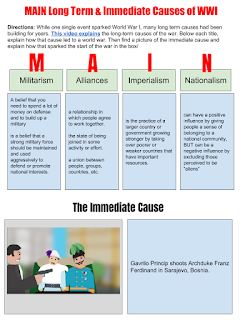 This week for for inquiry I was learning about M.A.I.N in WW1 The M is for Militarism, A is for Alliances, I is for imperialism, and the N is for Nationalism. These are the main four that caused ww1 (World war one). We had to add information about each topic, we had to get the information from a DLO (digital learning object), we had to find out which text was the right information for the right topic. I also worked with my friend Chris to do this. After the information and putting them with the right topic, we then had to add in what was the immediate cause.